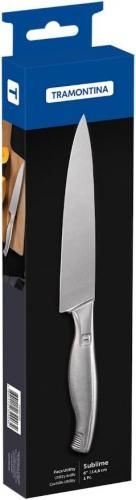 100年を超える歴史を持つブラジルキッチンウェアメーカー最大手「TRAMONTINA」スブリメシリーズのユティリティナイフ(ペティナイフ)。野菜、果物、肉や魚などに対応。先端がシャープなデザインの為、食材に切り込みを入れるなど万能に使える小型包丁です。