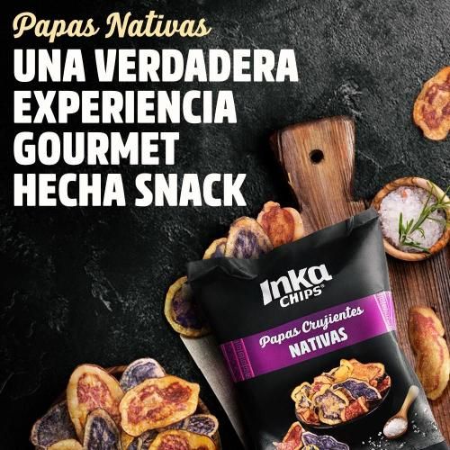 インカチップスの「ネイティブポテト(Papas Nativas)」は、ペルーで古くから栽培されてきた在来種ジャガイモを原料にしたポテトチップスです。「Papas Nativas」とは特定の一品種を指す名称ではなく、ペルー各地で受け継がれてきた伝統的な在来種ジャガイモの総称です。厳選された在来種ジャガイモならではの風味や色彩、食感を楽しめることが特長で、素材の個性を生かした味わいに仕上げられています。