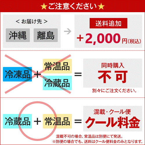送料無料商品でも北海道/九州、沖縄/その他離島へのお届けの場合、それぞれ送料210円、520円を頂戴致します。